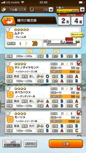 種付け権交換ポイントオフの終了が迫っております。皆様、王座地区予選に向けての配合の準備は万全でしょうか。私は締め切りまでにメイン・サブでそれぞれ配合を一周する予定です。片方は定番配合を私なりにブラッシュアップしてみました。確か初の母父直で…